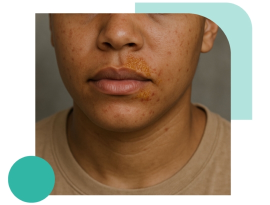 - Herpes simplex (cold sores) – Herpes causes fluid-filled blisters that can burst and crust over, much like the sores seen in impetigo.